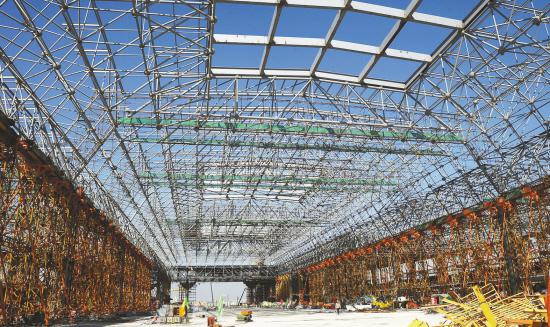 南京南站主站房采用橋建合一的高架平臺結構體系,主站房地上三層,地下一層,局部地下二層,從上至下依次包括屋頂網架、高架夾層、高架候車層、基本站臺層、地下一層與地下夾層。主體結構監測包括結構應力測試、動力響應測試和變形測試三部分,主要監測承軌層框架梁和承軌次梁中的鋼骨梁、候車層桁架弦桿和腹桿、屋蓋層網架桿件、出站層地面樓蓋在施工和使用階段的應力和變形情況。